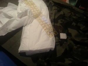 I used a pattern from The Long Thread that I found pretty quickly thanks to Google. It was easy to follow….and finding the website has provided some great inspiration! However, I did not have the exact materials suggested, so I improvised. I used 100% cotton that was supposed to become a crop jacket for Girly Girl, a cut up tablecloth from the dollar store that had been used at our wedding reception last month, and scrap fleece from making scarves for my nieces a million years ago. My original idea had been to use a zipper to close the opening, but I did not have a separating zipper handy…..so there is velcro instead.